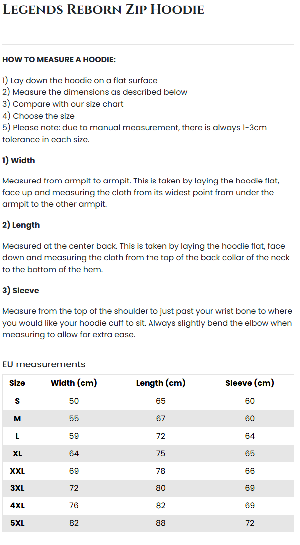 Our Legends Reborn collection reimagines the iconic “Legends” album artwork, offering Sabaton fans a bold, alternate take on a timeless masterpiece. This unisex zip hoodie features the reworked artwork on the back, a flaming Sabaton ‘S’ on the breast and the word “Legends” down one sleeve.